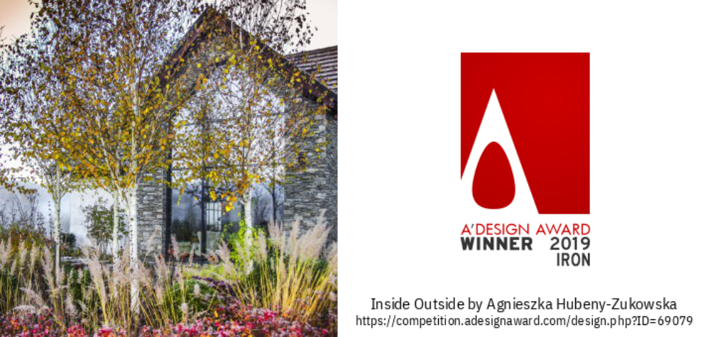 Wnętrze ogrodowe przy głównym oknie budynku, łączące wnętrze ze strefą zewnętrzną również zdobyło nagrodę - A'Design Award 2019 w Mediolanie.